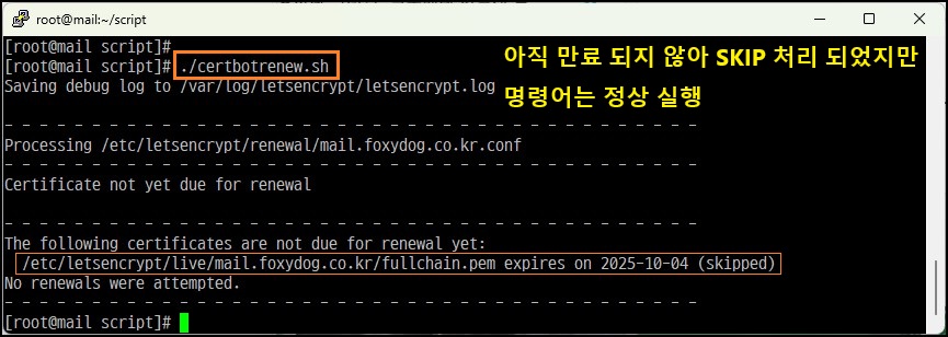 [root@mail script]# chmod +x /root/script/certbotrenew.sh (실행 권한 부여)