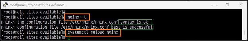 [root@localhost]# nginx -t (설정 테스트 확인)