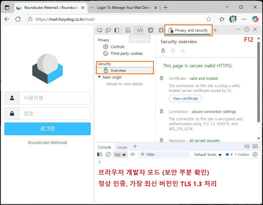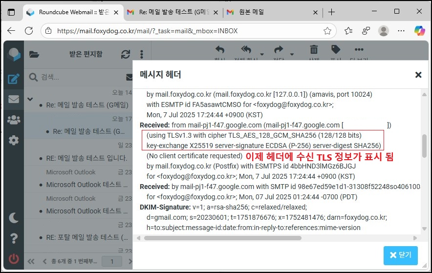 수신 및 서버로 메일 인증이 들어올 때 (25/587/465 등) TLS 인증서를 사용합니다.