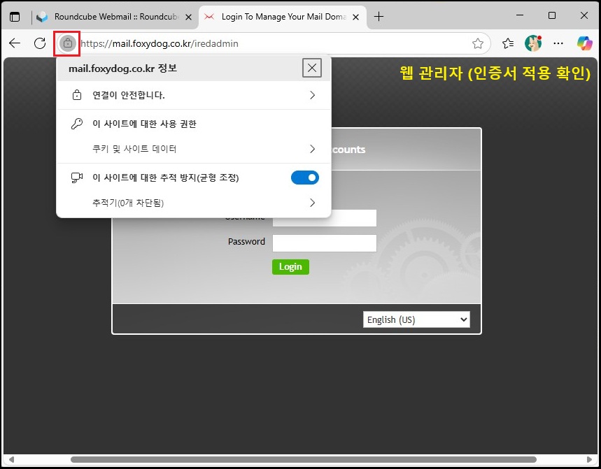 ◇ http(s)://mydomainhost/mail/, http(s)://mydomainhost/iredadmin/ 웹 메일(관리자) 접근 테스트