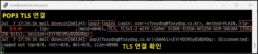 [root@localhost]# tail -f /var/log/dovecot/pop3.log (캡처 참고)