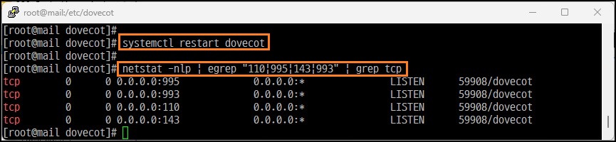 [root@localhost]# systemctl restart dovecot (서비스 재시작)