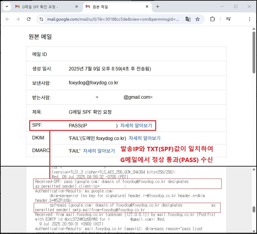 Gmail 수신자가 내가 보낸 메일을 SPF Fail로 판단 가능 |