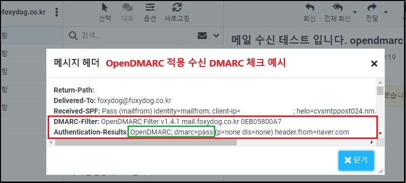 ※ iRedMail 오픈소스 메일 서버는 기본적으로 Amavisd-new 필터를 사용하며, DMARC 체크 기능은 포함되어 있지 않습니다. 이 내용은 앞선 포스팅(112)에서도 언급한 바 있습니다. 수신 DMARC까지 처리하려면 Postfix + OpenDKIM + OpenDMARC 구성이 필요합니다.