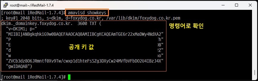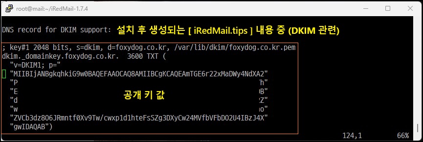 ※ iRedMail 자동 설치 시, 동일하게 도메인에 맞게 개인 키/공개 키 자동으로 생성됩니다.