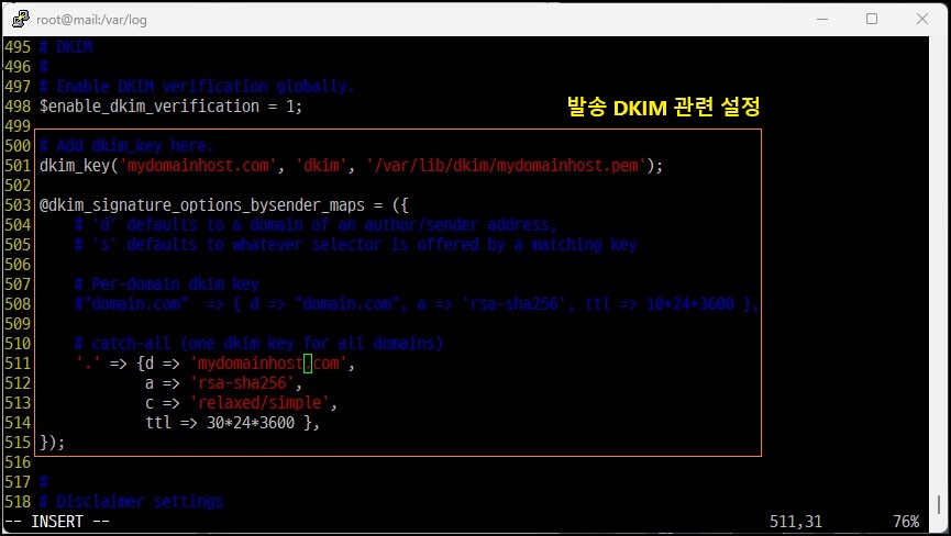 ◈ STEP② DKIM 정책 적용(Amavisd-new)