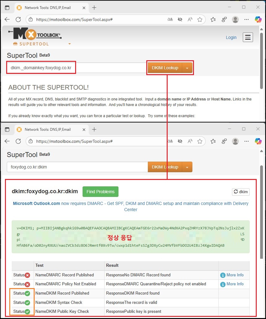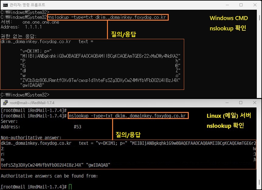※ DKIM 등록 DNS 질의 테스트
