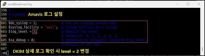 $log_level = 2; (로그 레벨, 기본 0 → 2 (최대 5) 변경, DKIM 로그 확인)