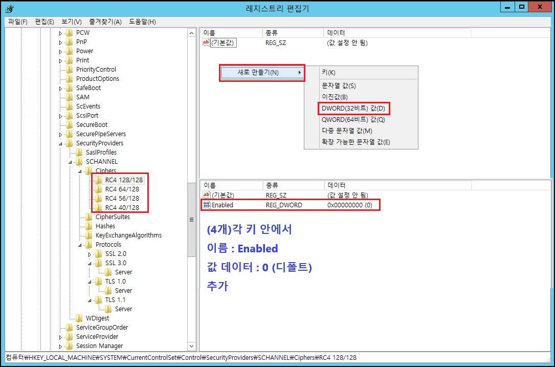 ② RC4 암호화 알고리즘 비활성화