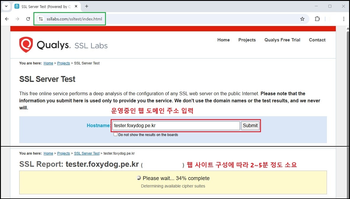 ※ 공식 홈페이지 URL : https://www.ssllabs.com/ssltest/index.html