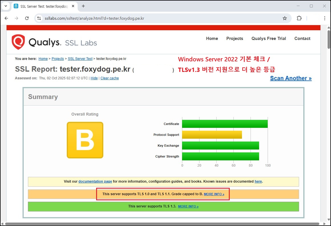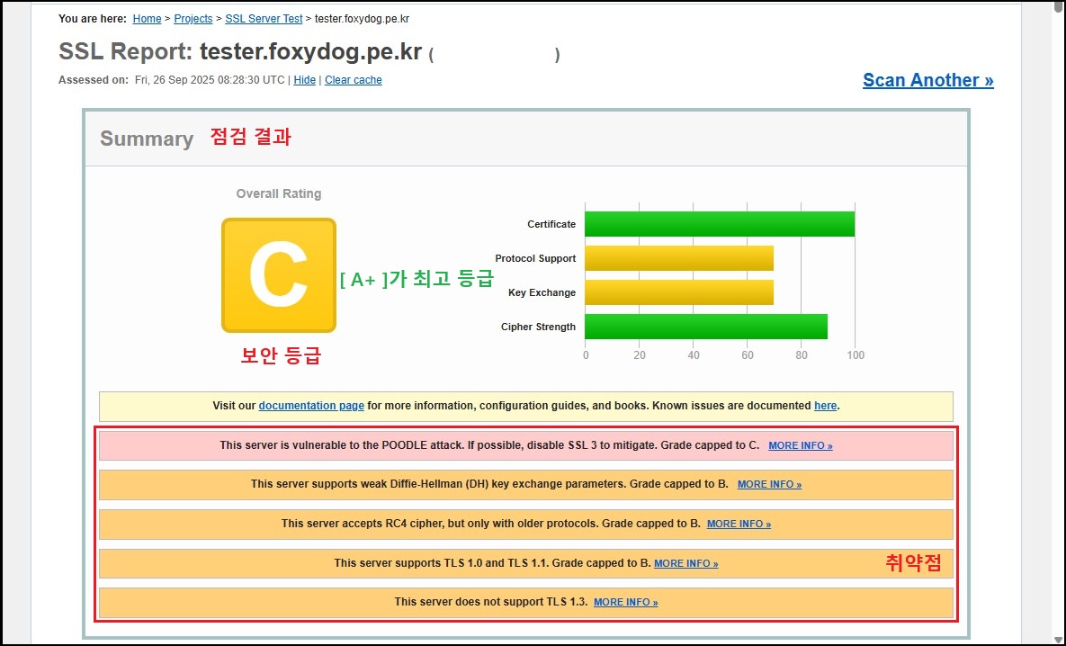 ① Qualys SSL Labs 웹 점검 툴을 이용한 점검