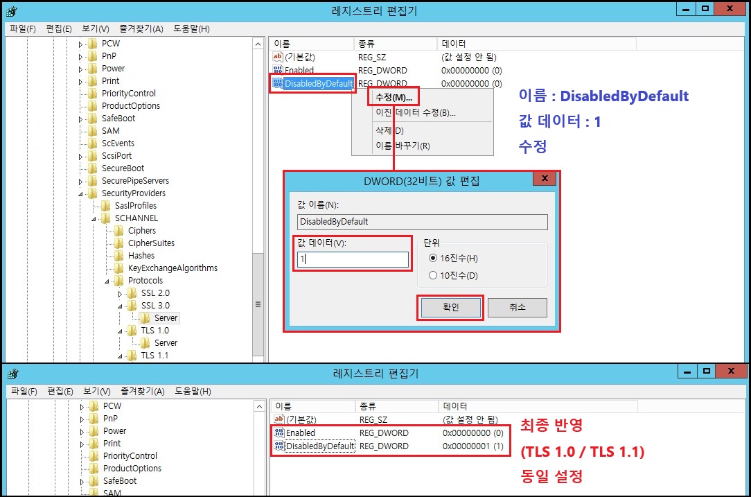 ① SSL / TLS1.0 / TLS1.1 프로토콜 비활성화