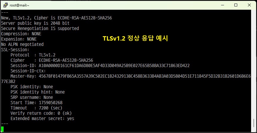 # openssl s_client -connect mydomain:443 -tls1_2 [TLS 1.2 연결 테스트]
