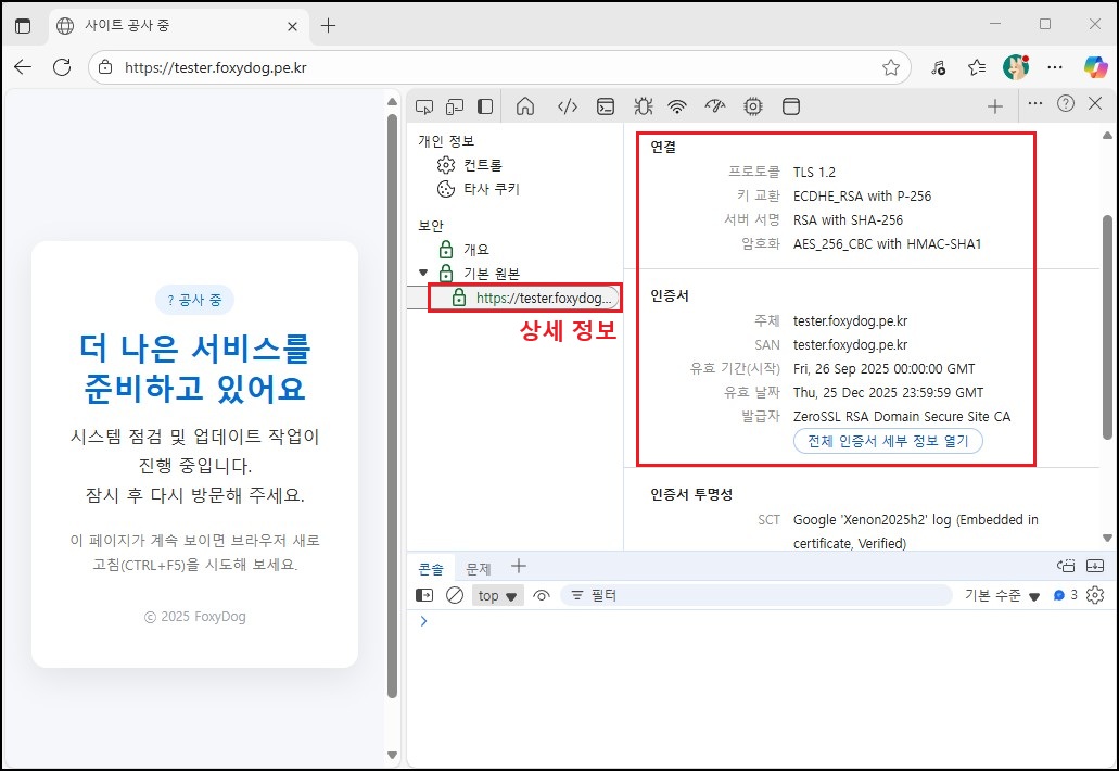 ※ 테스트를 하기 위해서는 웹 서버가 「HTTP(80)/HTTPS(443)」포트 등이 방화벽에서 오픈되어 있어야 합니다.