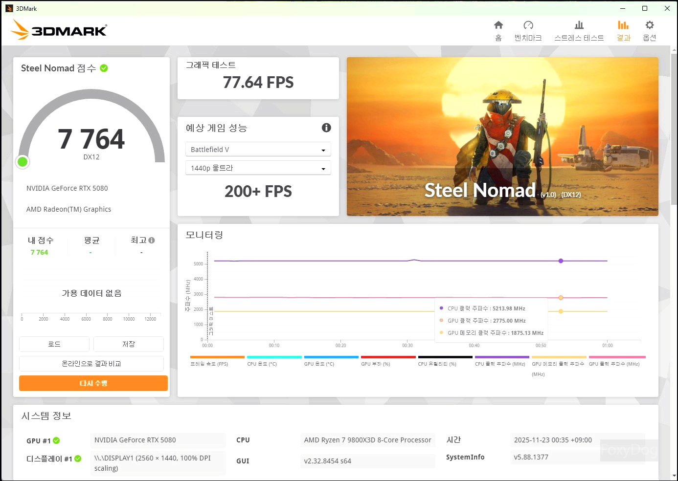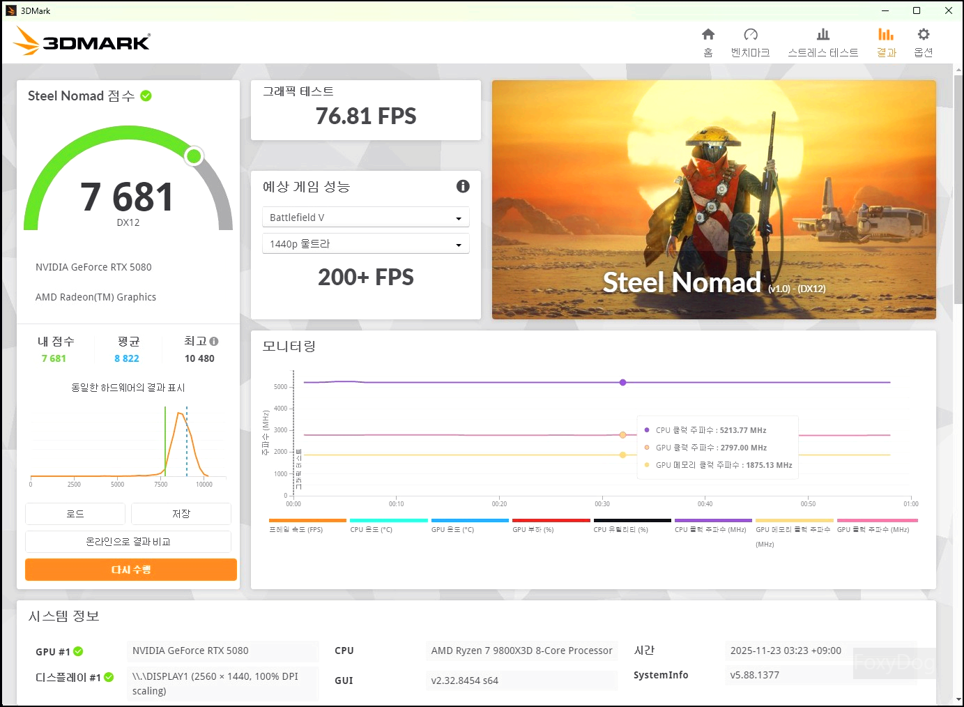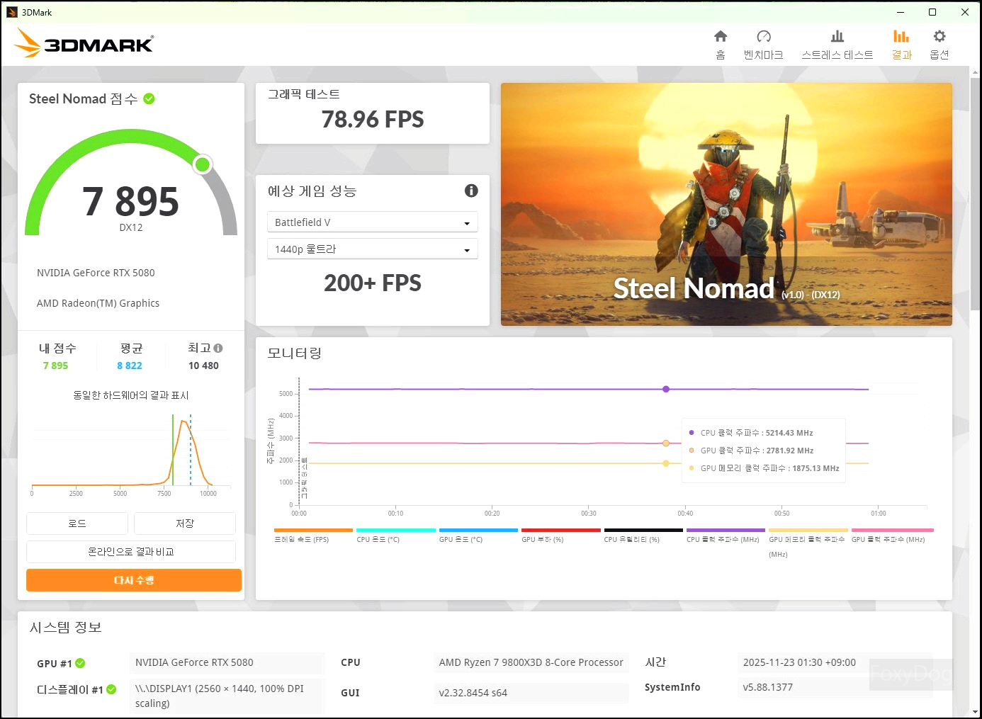 | 테스트 방식-Steel Nomad(DX12) / PCIe 5.0, Lane x16 | 스코어(점수) |