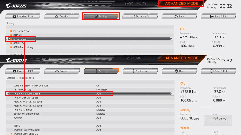 ③ Gen5「PCIe 5.0, Lane x16 정상 작동」※ 라이저 케이블, 및 그래픽카드 재 장착