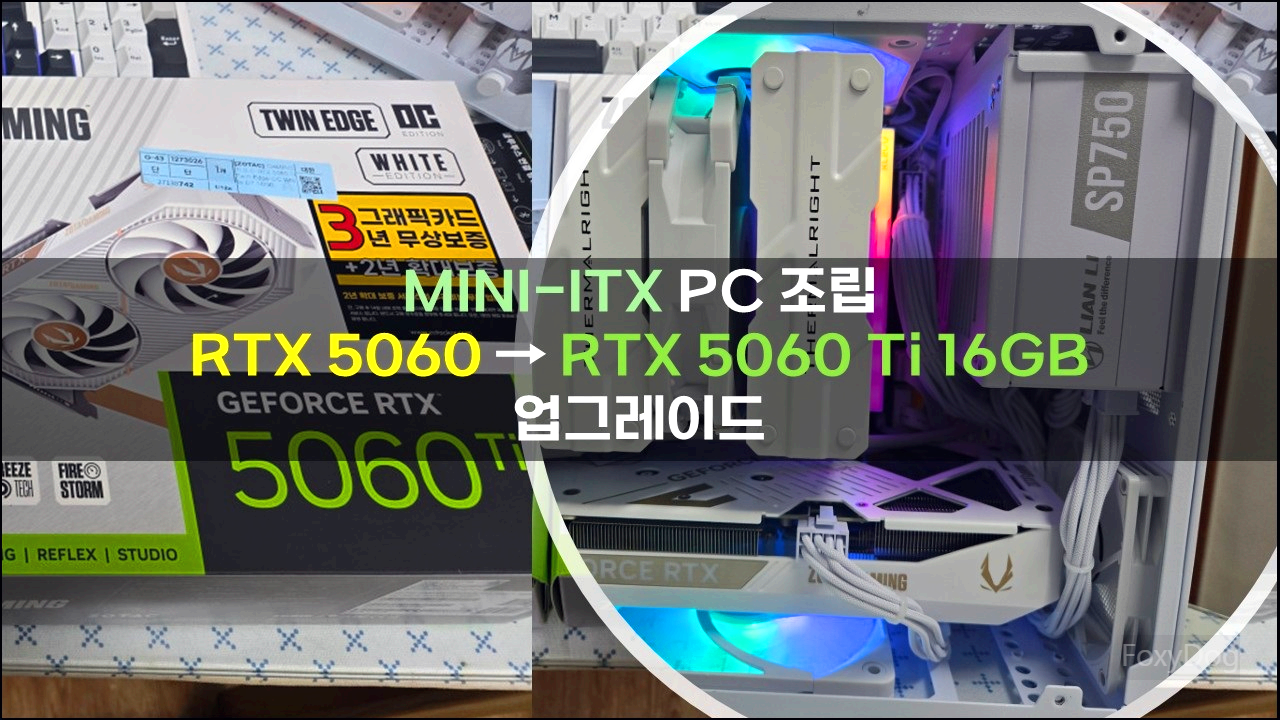 사실 「5060 Ti 8GB」도 잠깐 고민했었지만 최종적으로는 「5060 Ti 16GB」를 선택했습니다. 만약 8GB를 선택했다면 지금쯤 후회하고 있을지도 모를 정도로, 예상외로 16GB 모델이 AMD 9600과의 조합에서 상당히 만족스러운 퍼포먼스를 보여주었습니다. 세부적인 성능은 이후 테스트로 직접 확인해 보기로 하고, 이번 글에서는 최대한 장황한 설명을 줄이고 실제 화면 중심으로 진행해 보겠습니다. 모든 사진은 스마트폰으로 직접 촬영했고, 조립/사용기 위주로 차근차근 풀어보겠습니다. (※ 스압주의)