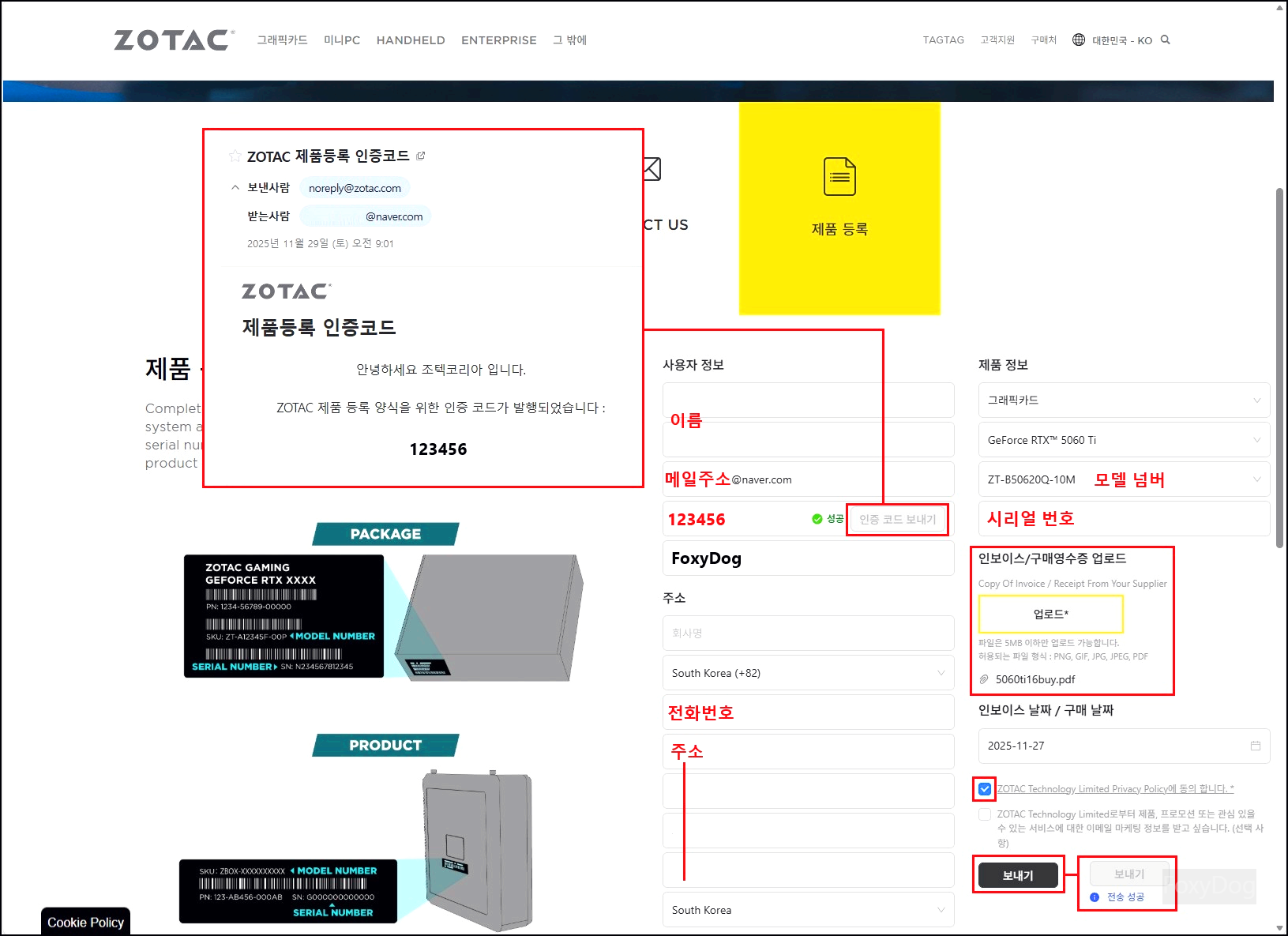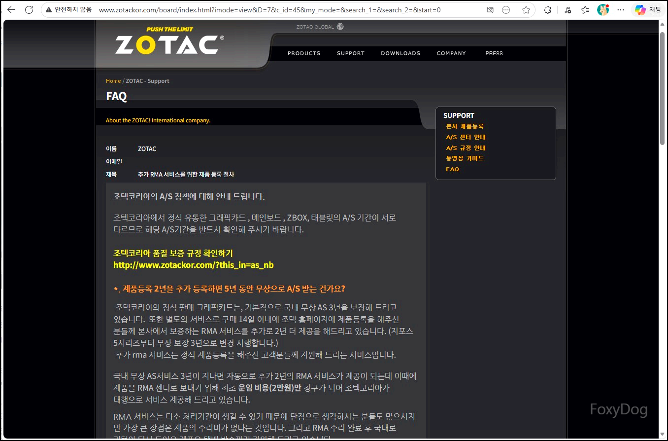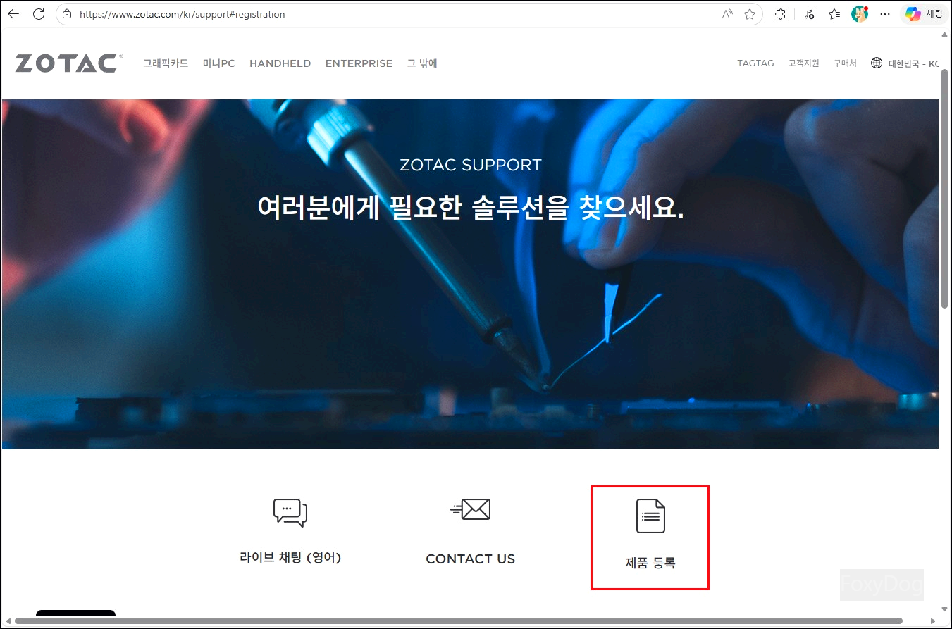 ◇ 등록 페이지 : https://www.zotac.com/kr/support#registration