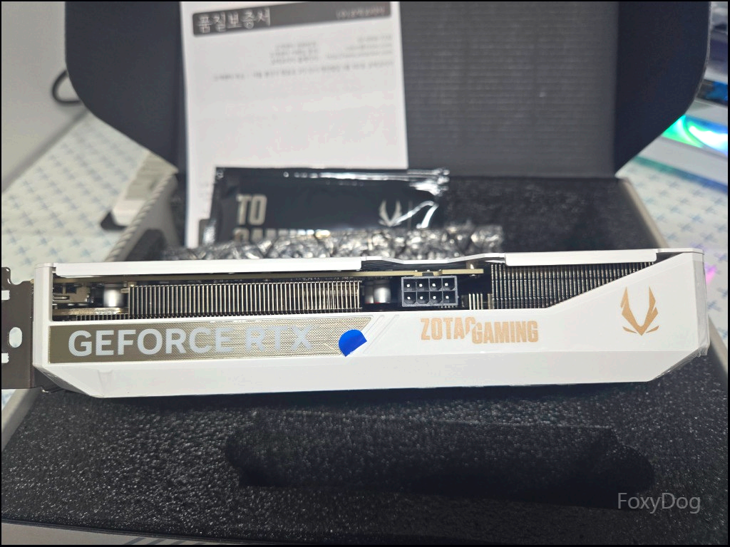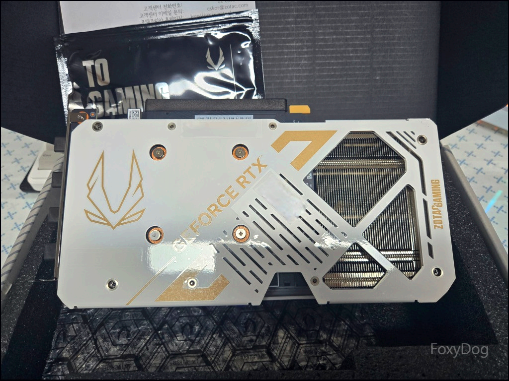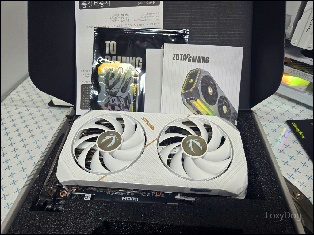 조텍코리아에서 유통하는 「RTX 5060 Ti Twin Edge OC White D7 16GB」 제품입니다. 이 회사 제품은 처음 구입해 보았는데, 첫인상이 상당히 좋았습니다. 조텍은 기본 보증이 3년이며, 구매 후 2주 이내에 자사 홈페이지에 제품 등록을 하면 추가로 2년이 더 연장된다고 합니다. 품질과 서비스 지원이 괜찮은 편인 데다, 가격도 타사 대비 합리적으로 형성되어 있어 인지도가 의외로 높습니다.