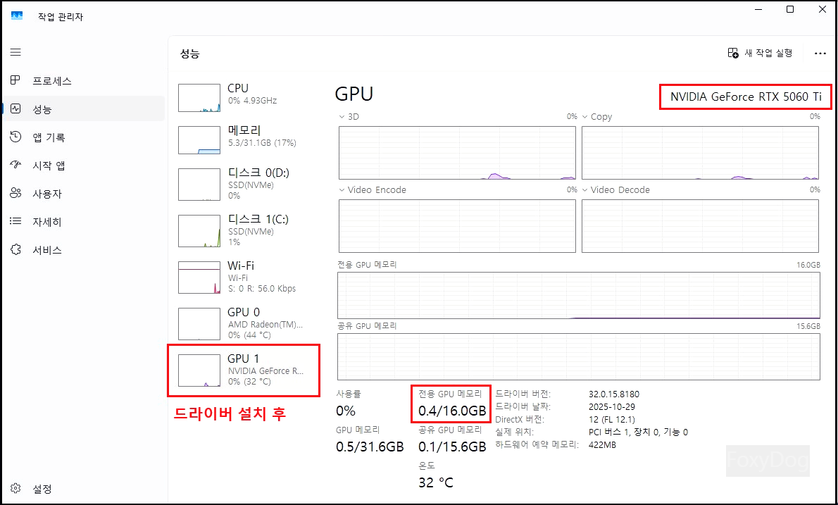 ① 5060 Ti 16GB 상태 확인