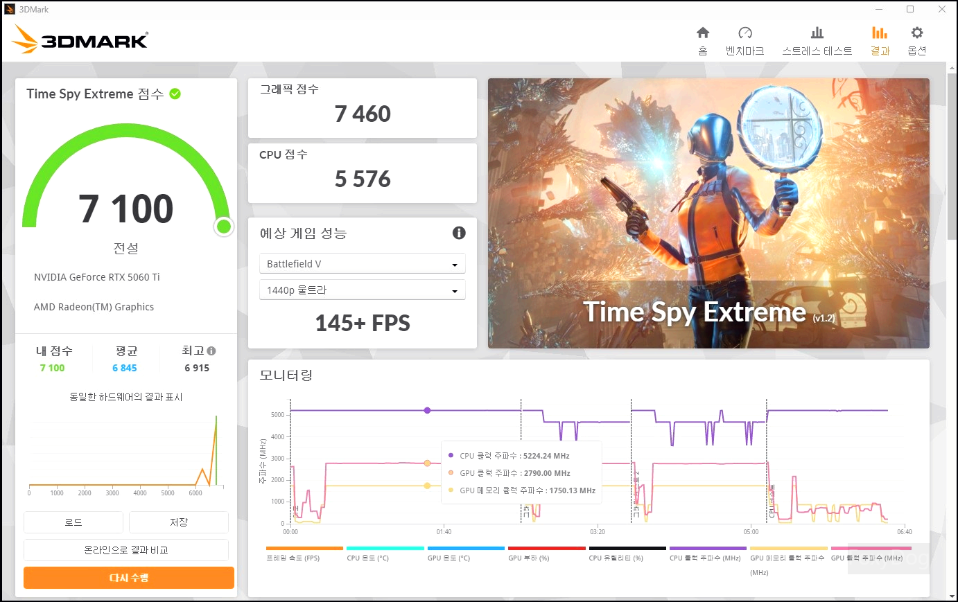 ◈ 3DMark 및 간단 게임 테스트(AMD 9600/FHD/120Hz 기준)