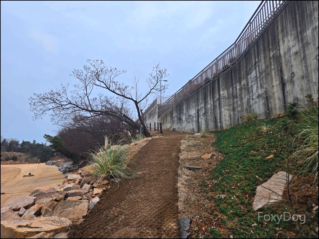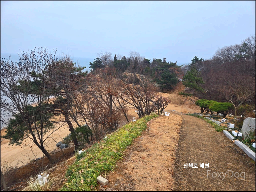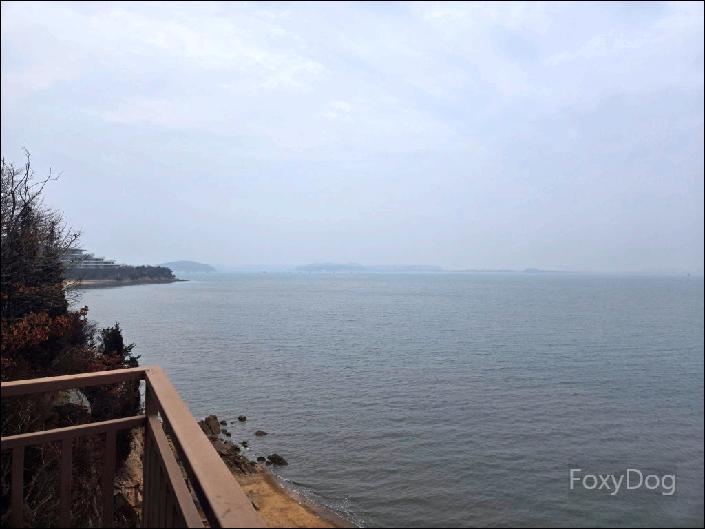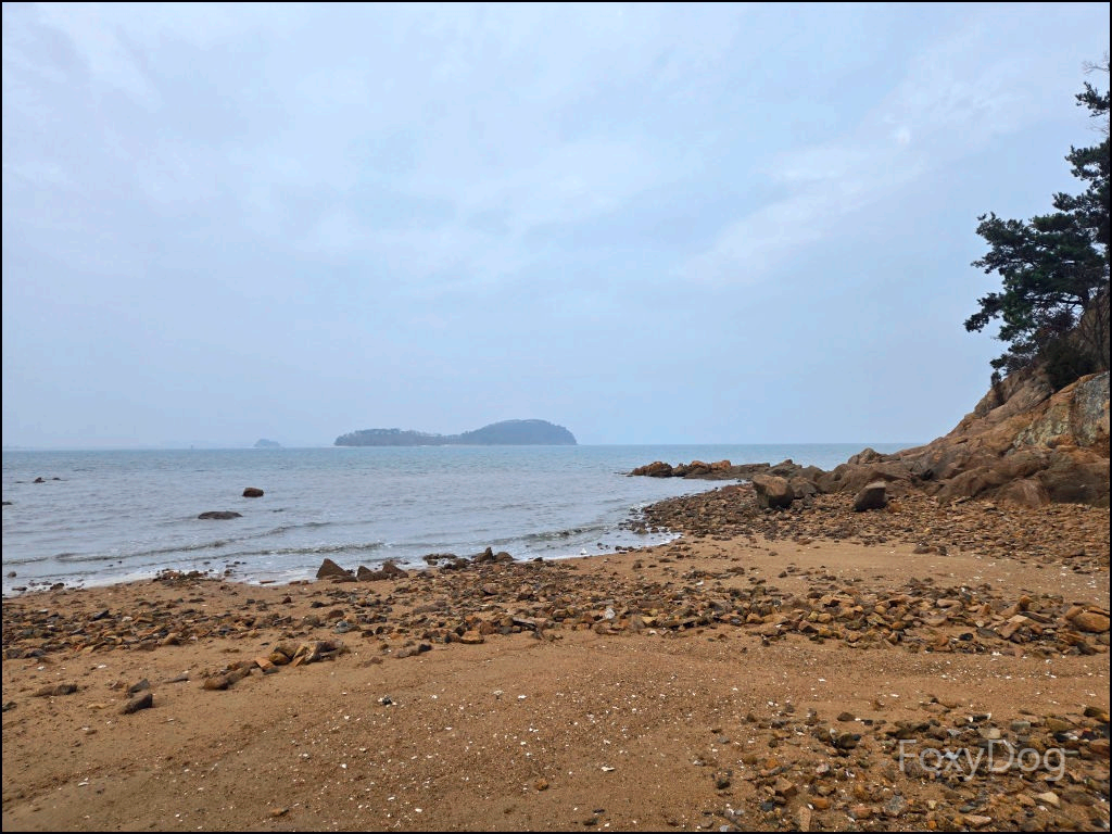 그리고 무엇보다 좋았던 건, 바다 전경을 한눈에 볼 수 있는 위치라는 점이다. 상쾌한 바닷바람을 정면으로 맞으며 서 있으니, 그동안 쌓였던 스트레스가 한 번에 내려가는 느낌이 들었다. 날씨가 다소 흐리긴 했지만, 겨울에 눈이나 비가 오지 않은 것만으로도 충분히 감사한 상황이었다. 이 풍경을 잊지 않으려고 눈으로, 그리고 머릿속에 그대로 담아두었다. 중간에 보이는 섬은 사렴도, 그 뒤쪽에 보이는 곳은 매도랑이라고 불린다.