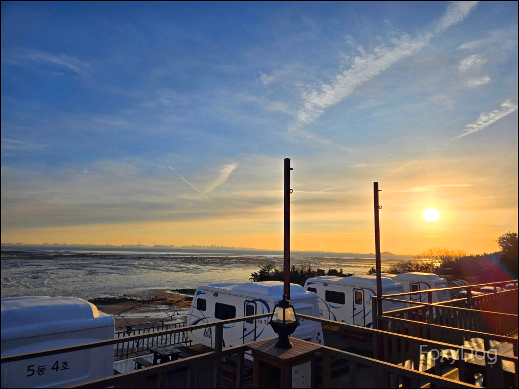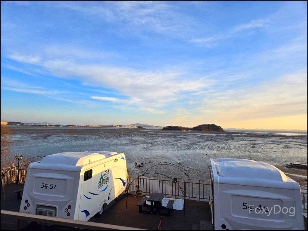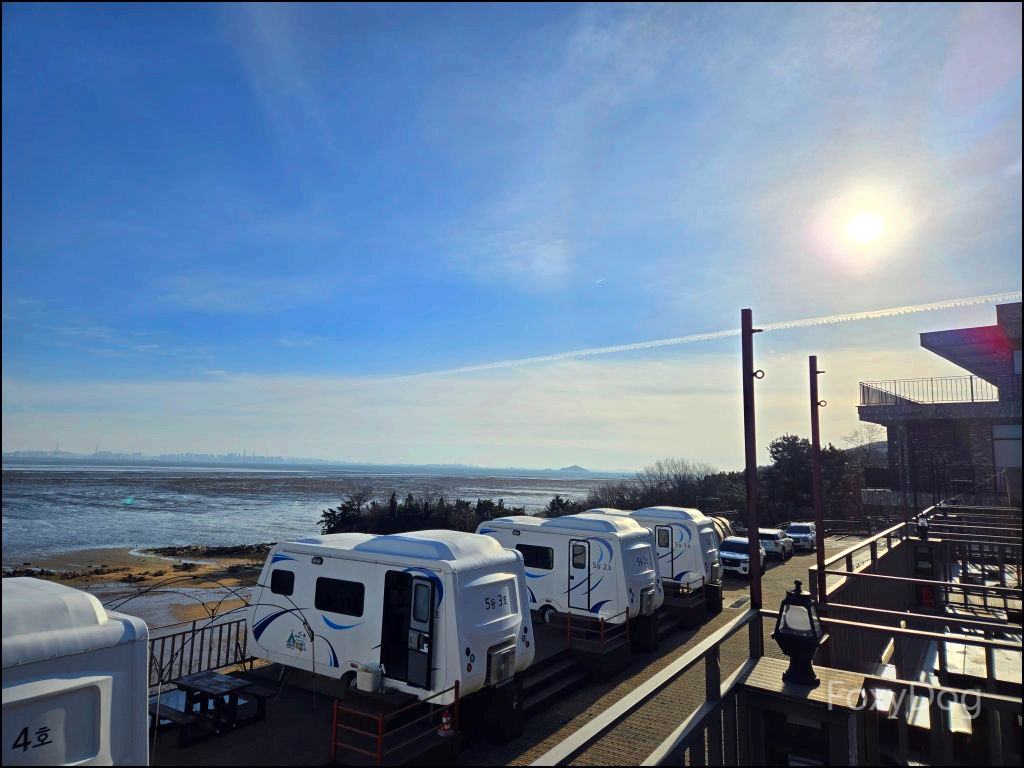 아침에 눈을 뜨고 마주한 캠핑장의 풍경도 그 자체로 한 폭의 그림 같았다. 마침 썰물 시기라 간조(물이 가장 낮을 때) 상태였고, 중간에 있는 섬이 훤히 드러나 있어 걸어서 건너갈 수 있을 것처럼 보였다. 추위를 싫어한다면 겨울 캠핑은 절대 추천하지 않지만, 이곳은 초봄~가을이 되면 자리 경쟁이 치열할 정도로 인기가 많을 것 같다는 생각이 들었다.
