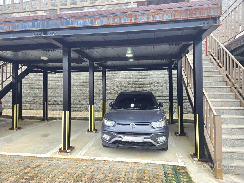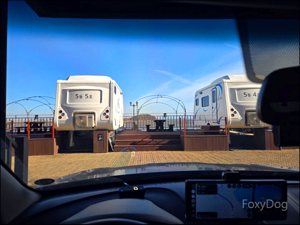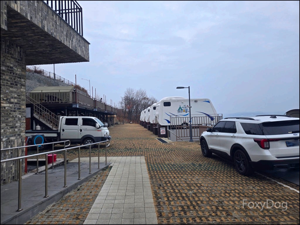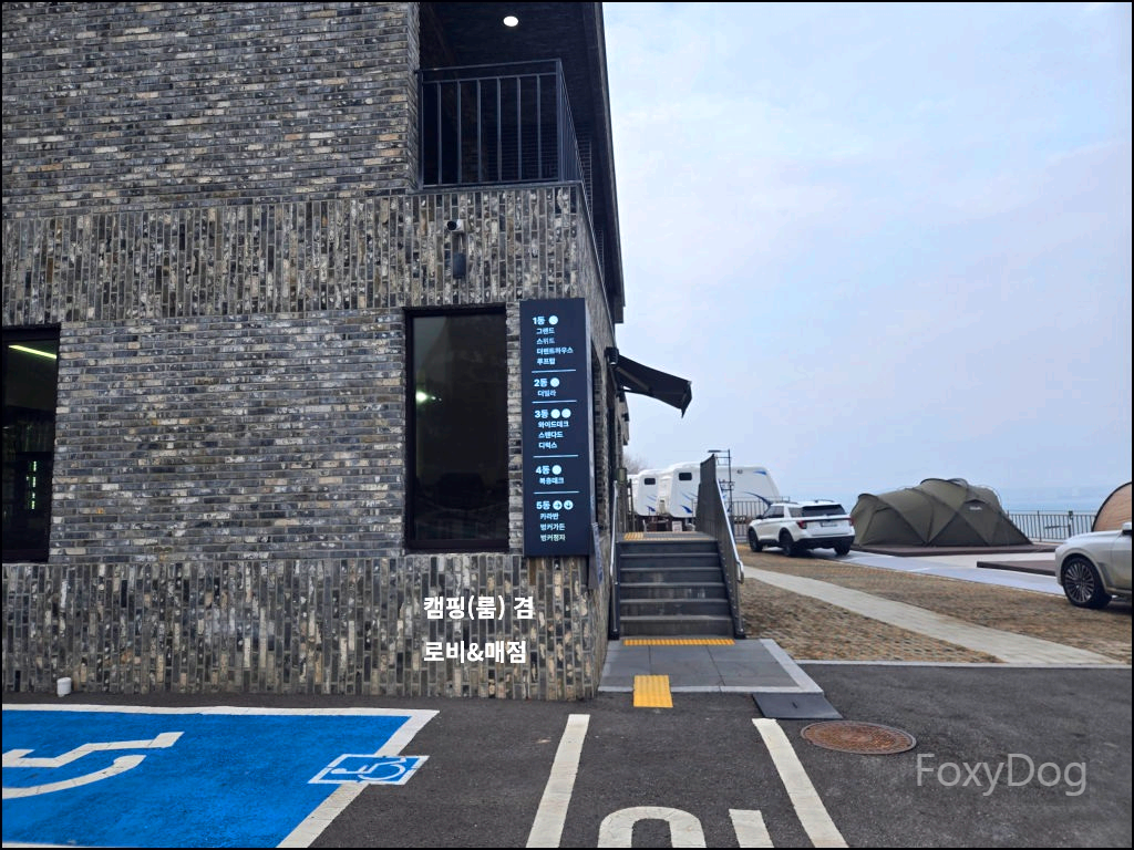 이곳은 특이하게 복층 형태의 데크로 되어 있어, 아래쪽에 차량을 주차할 수 있기 때문에 짐을 옮기는 데 큰 불편함이 없다. 다만 복층 데크는 지정석이 아니라 선착순이라, 도착한 순서대로 원하는 자리를 잡는 방식이다. 맨 끝자리를 노렸지만, 비교적 일찍 도착했음에도 이미 선점한 팀이 있어 아쉽게 포기했다.