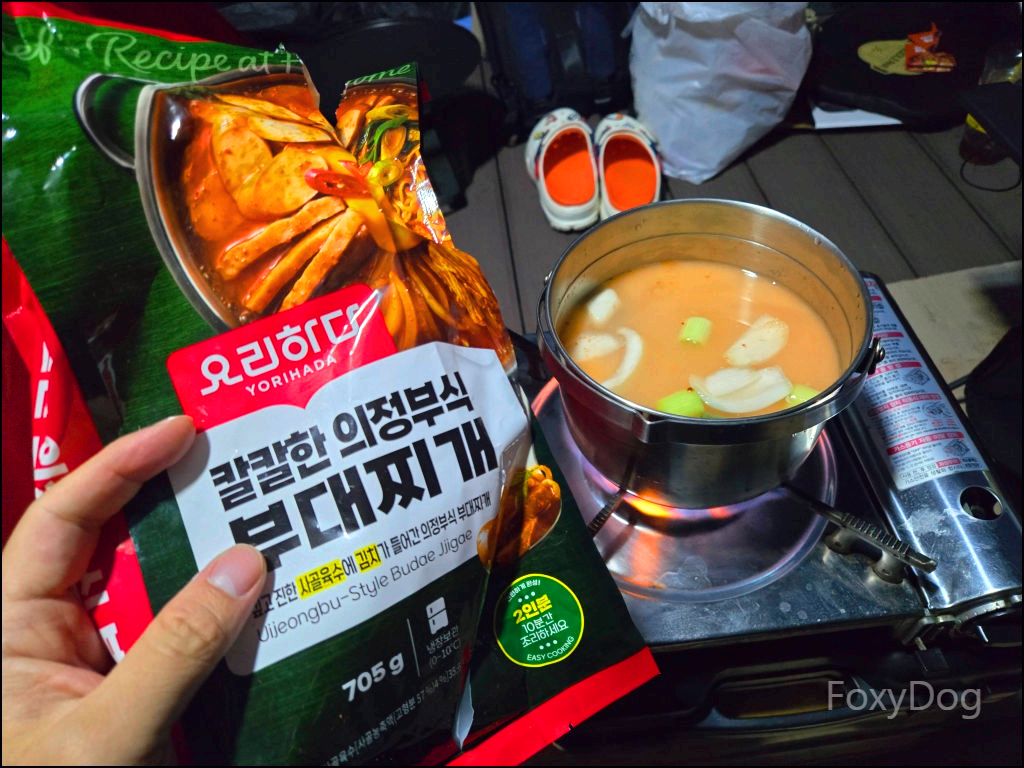 이번에는 날씨가 추운 만큼 국거리부터 먼저 준비했다. 흔한 마트에서 할인 판매 중이던 밀키트 중에서 칼칼한 의정부식 부대찌개를 선택했다. 2인분이라고 해봐야 밀키트에 얼마나 양이 있을까 싶어 큰 기대는 하지 않았는데, 웬걸... 생각보다 구성이 꽤 알찼다. 사골 육수, 양념 소스, 사리면, 치즈, 소시지와 프레스햄, 대파와 양파, 간 마늘, 김치까지 재료가 다양하게 들어 있었고, 물 500ml를 붓고 모든 재료를 한 번에 넣으니 양이 꽤 많아 놀랐다. 만원도 안 하는 가격에 이 정도면 가성비가 아주 좋은 밀키트라 충분히 추천할 만하다. 칼칼하고 매운 걸 좋아하는 형님도 기대를 하셨고, 진한 사골 육수를 우려내기 위해 약 10분 정도 끓여줬다.