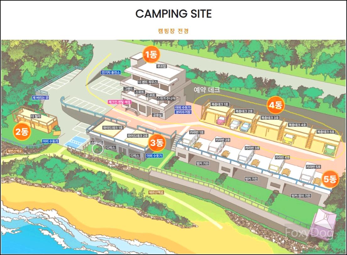 인터넷에 올라온 예전 사진들과 비교해 보면 분위기가 많이 다른데, 최근에 시설을 전반적으로 신축 및 정비하신 것으로 보인다. 복층 데크나 와이드 데크 이용자들도 모두 공용(24시간)으로 사용할 수 있도록 구성되어 있다. 혹시 준비물을 놓쳤더라도 방문객에 한해 대부분의 시설을 편하게 이용할 수 있도록 잘 준비되어 있어, 말 그대로 몸만 와도 될 정도다. 이제 본격적으로 캠핑장 내부를 둘러보도록 하자.
