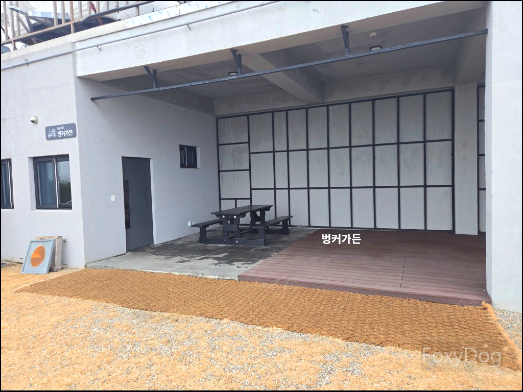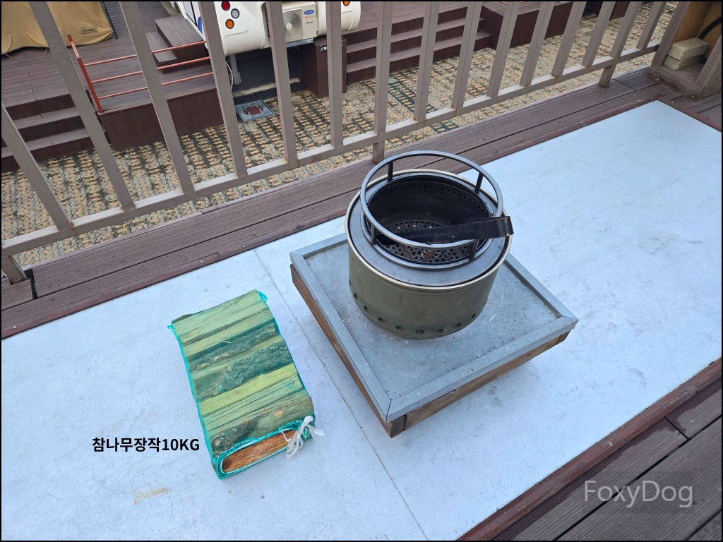 이제 형님도 한 번 캠핑을 경험해 보셨다고, 따로 어드바이스를 드리지 않아도 알아서 척척 도와주셔서 약 30분 만에 베이스캠프 세팅을 마칠 수 있었다. 바로 앞에는 바비큐 테이블과 불멍 화로대가 자리 잡고 있다. 단, 개인 장비 사용은 불가하며 캠핑장에서 제공하는 장비 세트를 대여해 사용해야 한다.