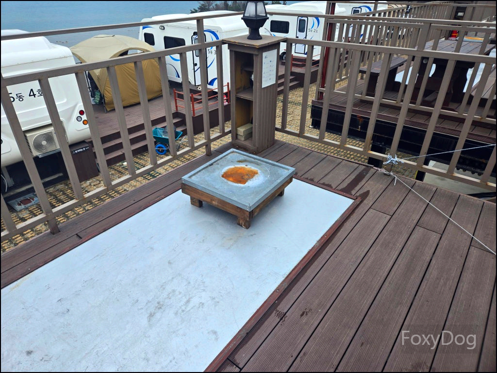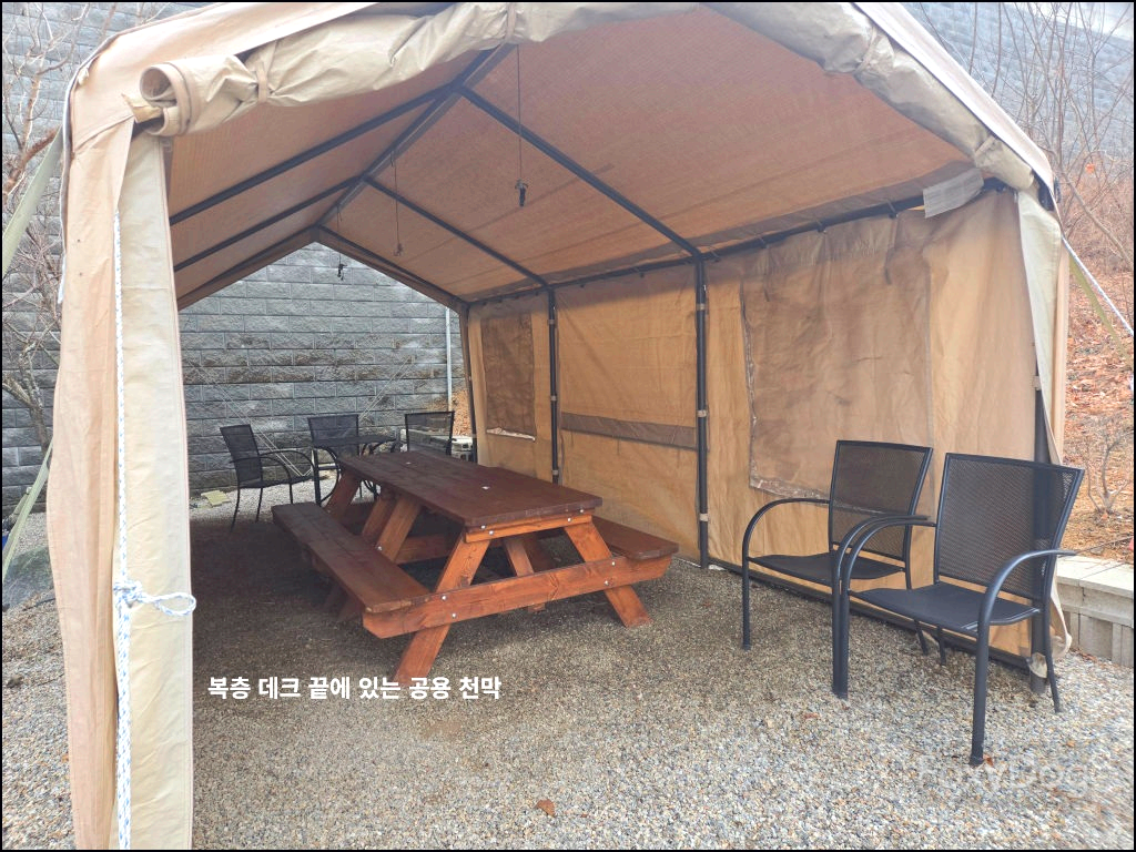 역시 처음 오는 곳에서는 한두 가지쯤 놓치기 마련이다. 생각해 보니 다른 데크 쪽에 전기 케이블 같은 게 보이긴 했는데, 그때는 대수롭지 않게 넘겼던 것 같다. 전기가 되는 걸 알았다면 온열기나 전기매트라도 미리 준비했을 텐데, 뭐 없으면 없는 대로 즐기는 게 또 캠핑의 묘미가 아닐까 싶다. 다음에 다시 오게 된다면, 이번에 미처 신경 쓰지 못했던 준비물들을 좀 더 꼼꼼하게 챙길 것이다.