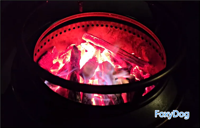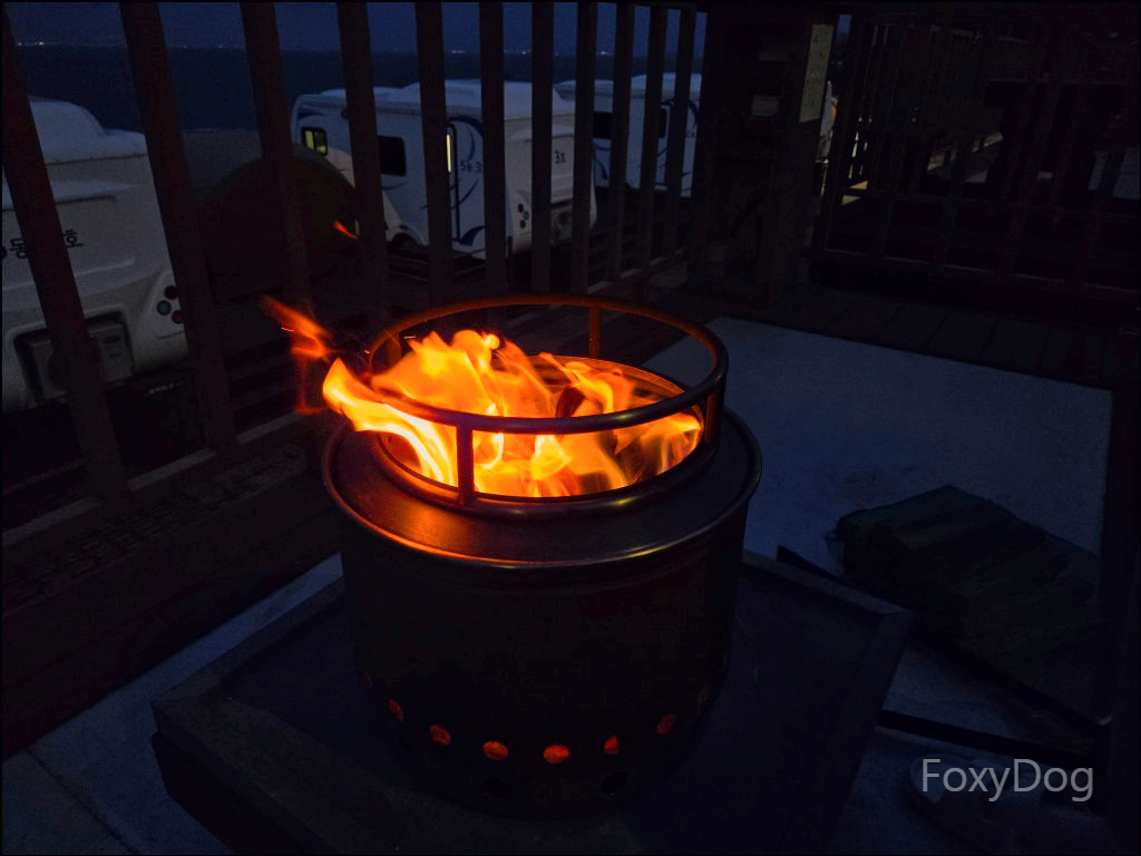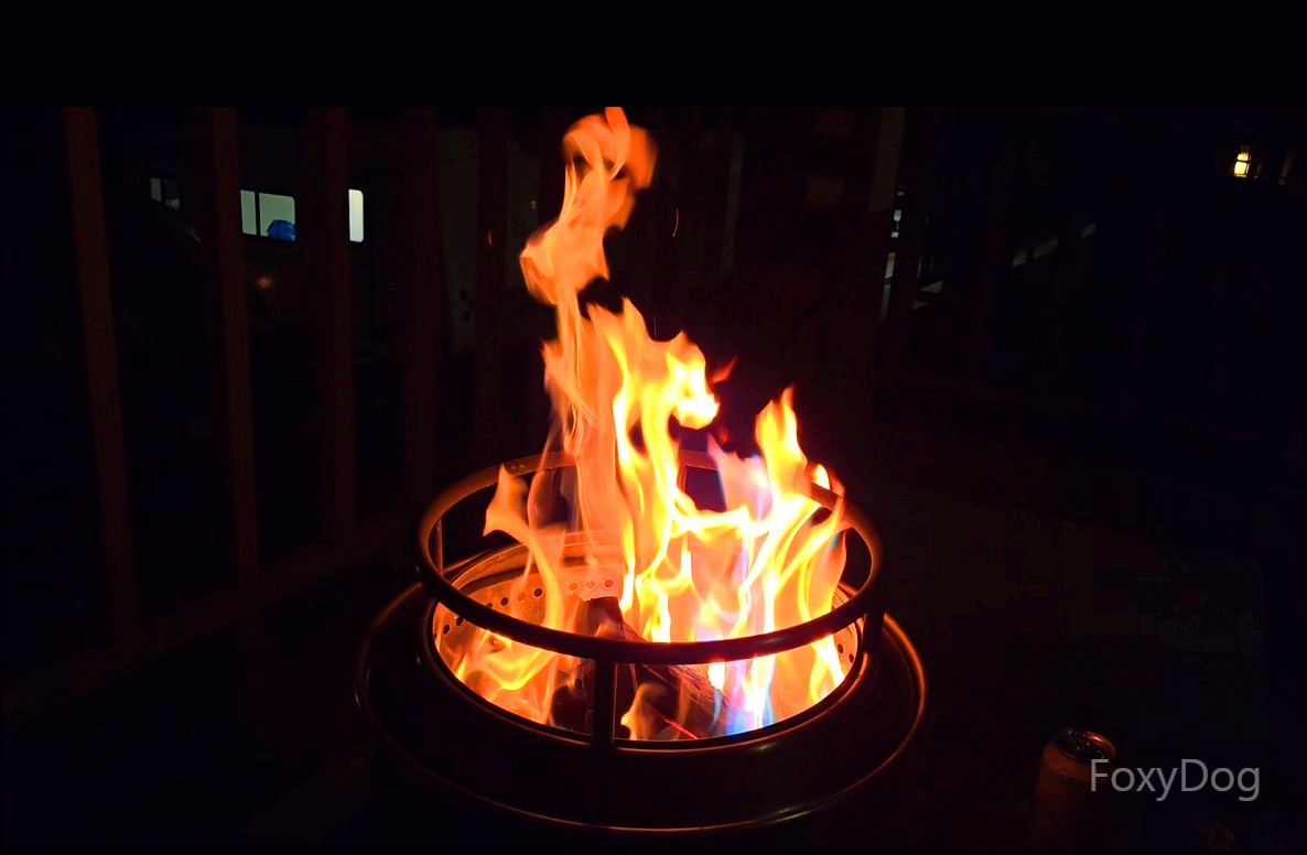 이제 배도 어느 정도 채웠고, 이후에 할 일은 크게 많지 않았다. 형님과 이런저런 세상만사 이야기를 나누며, 멋진 야경을 바라보고 불멍을 즐기는 것뿐이었다. 이번에 처음 방문하면서 오로라 착화제를 쿠폰으로 무료 제공받았는데, 화로대에 통째로 넣어보니 오와... 불빛이 달라지면서 감성 지수가 두 배로 올라가는 느낌을 제대로 받을 수 있었다.
