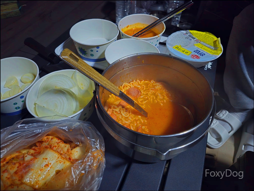 몸을 녹이기 위해 준비해 둔 핫초코와 우유를 끓여 섞어 마셨는데, 이것 또한 달달한 천국의 맛이었다. 어느 정도 몸이 풀린 뒤에는 조식으로 간단하게 미니 컵라면으로 허기를 달랬다. 그렇게 느긋하게 시간을 보내다가, 전날 귀찮아서 미뤄두었던 설거지와 쓰레기 분리수거를 마무리했다. 이곳은 공용 실내 공간에서 따뜻한 온수를 사용할 수 있어 아침 정리도 훨씬 수월했고, 평의성 면에서 다시 한번 좋은 인상을 받았다.