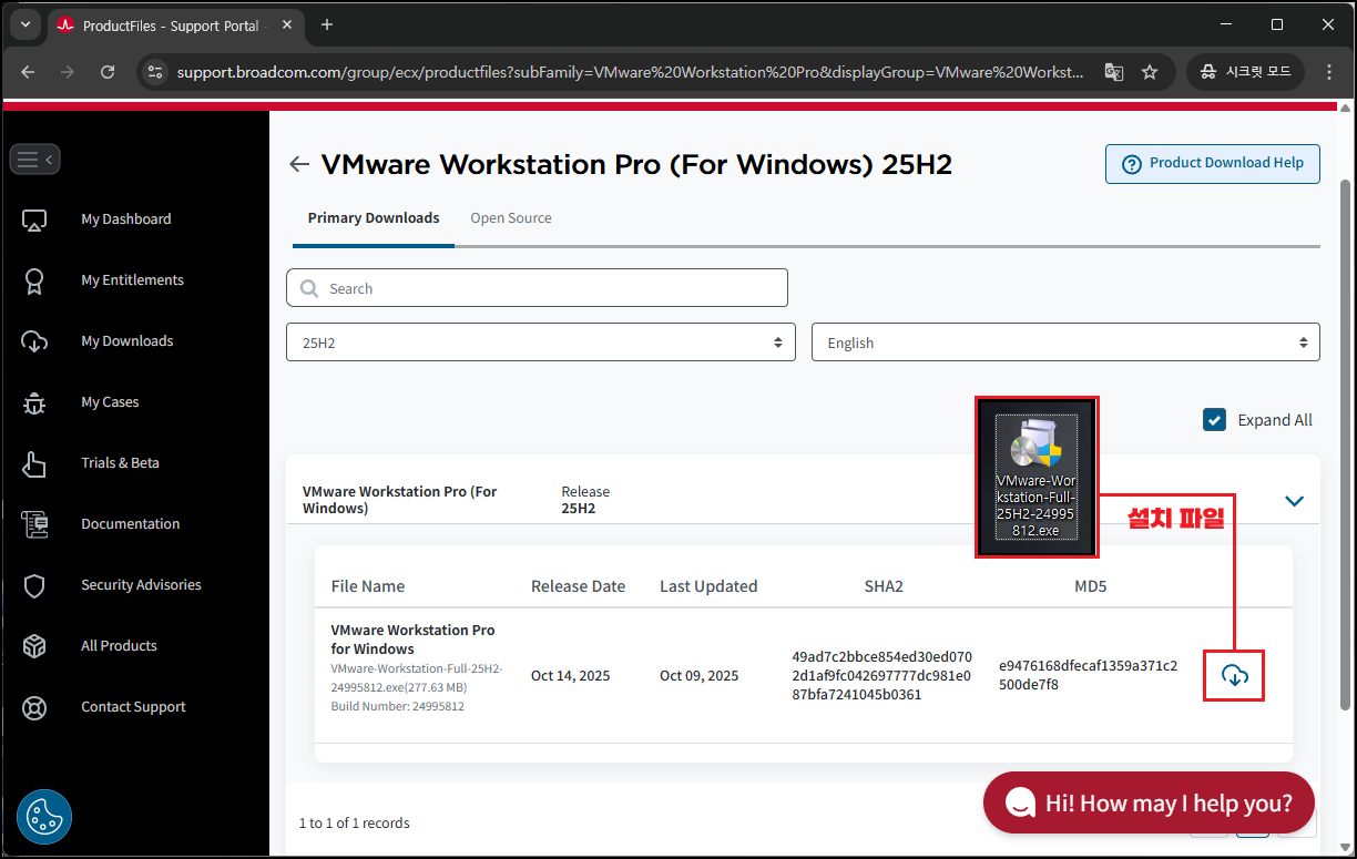 ◈ Workstation Pro 25H2 다운로드 및 설치