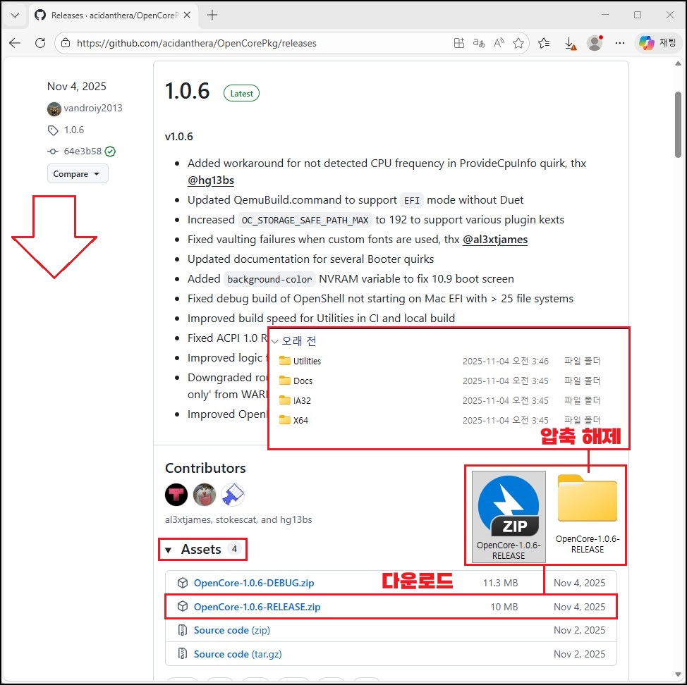 ⑤ OpenCorePkg 소스 다운로드 및 압축 해제(이하동문)