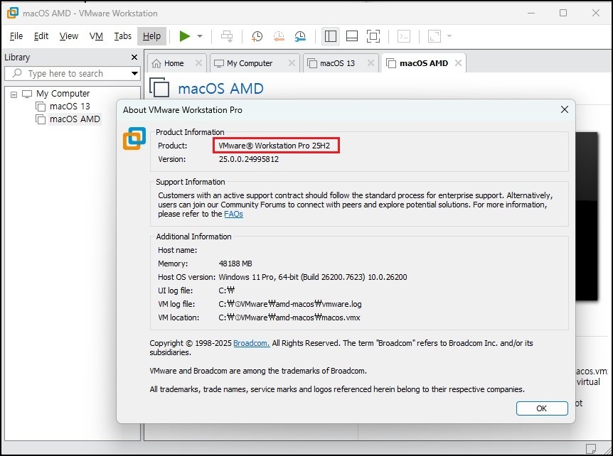 | [VMware(Broadcom)] Workstation Pro 25H2 설치 + macOS (Unlocker) 적용 (0) | 2026.01.01 |