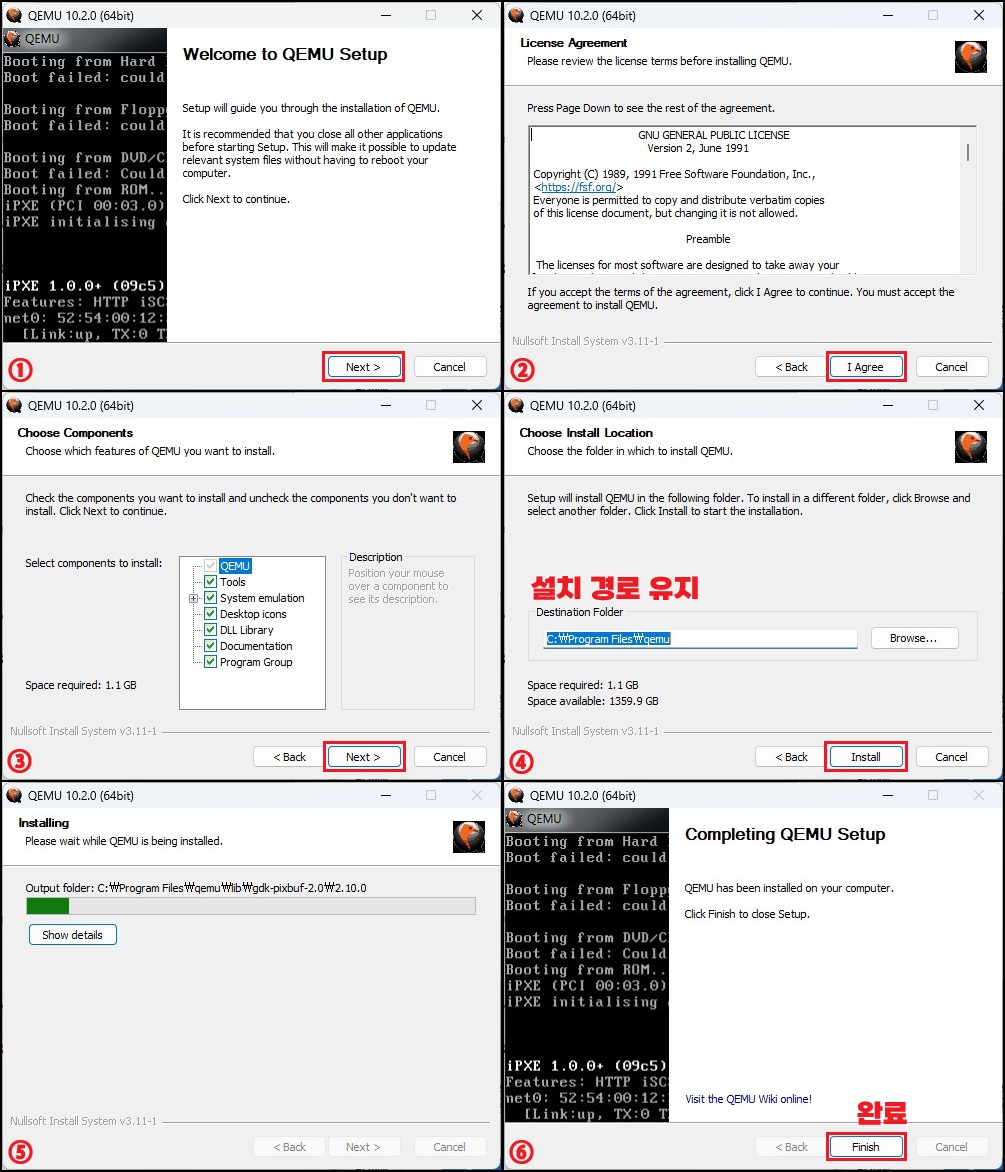 설치 경로는 C:\Program Files\qemu 그대로 유지하는 것을 권장합니다.