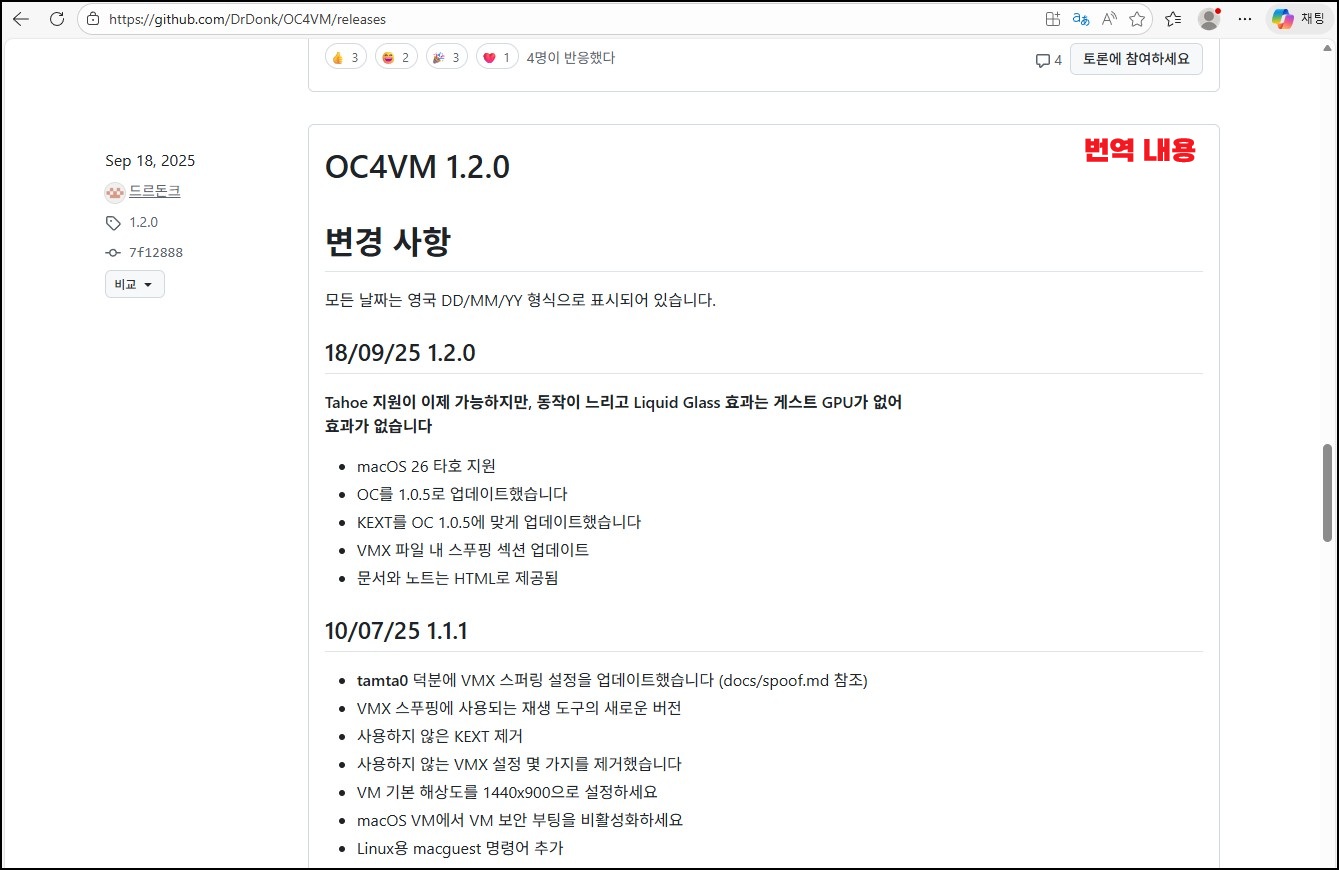 ◇ 다운로드 페이지 접근 : https://github.com/DrDonk/OC4VM/releases