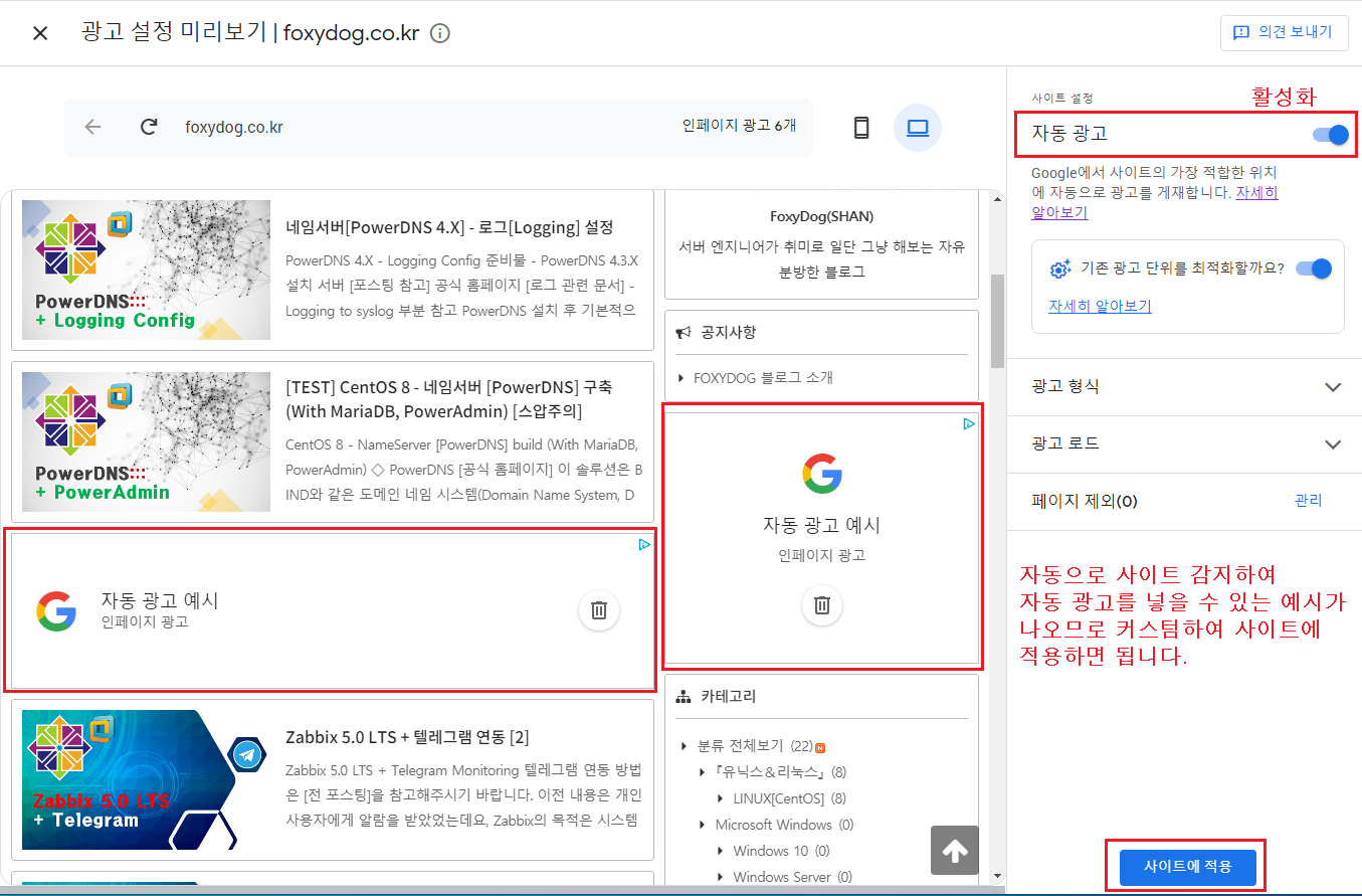 승인이 완료되면 본인의 블로그나 홈페이지에 맞게 커스텀하여 광고를 게재하면 됩니다.