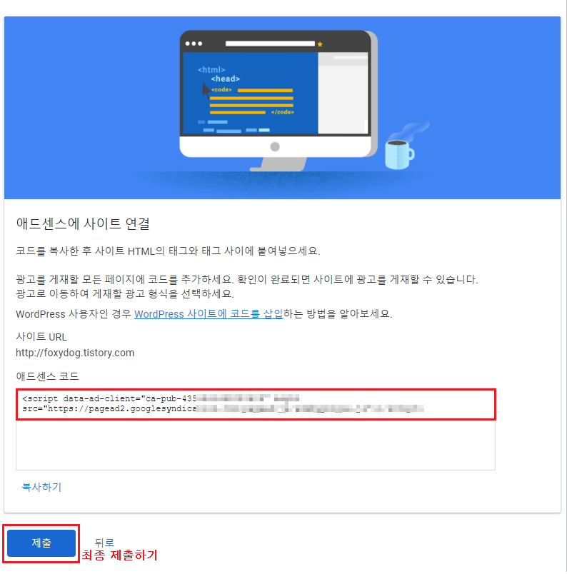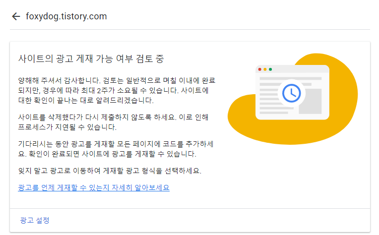 사이트의 광고 게재 가능 여부 검토[최대 2주] 기다리기