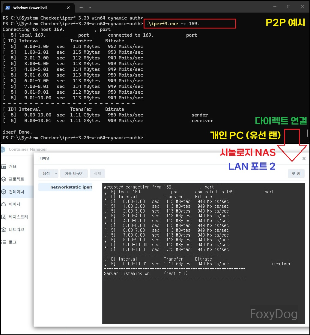 iPerf3는 네트워크 속도 테스트할 때 거의 표준처럼 쓰는 도구라고 보시면 됩니다. 인터넷 속도가 아니라 서버 장비(Synology NAS) ↔ 개인 PC(클라이언트) 간 실제 전송 성능을 측정하는 용도입니다. NAS 직결 속도 테스트, USB 랜카드 성능 확인, 내부망 병목 확인할 때 유용하게 사용할 수 있습니다.
