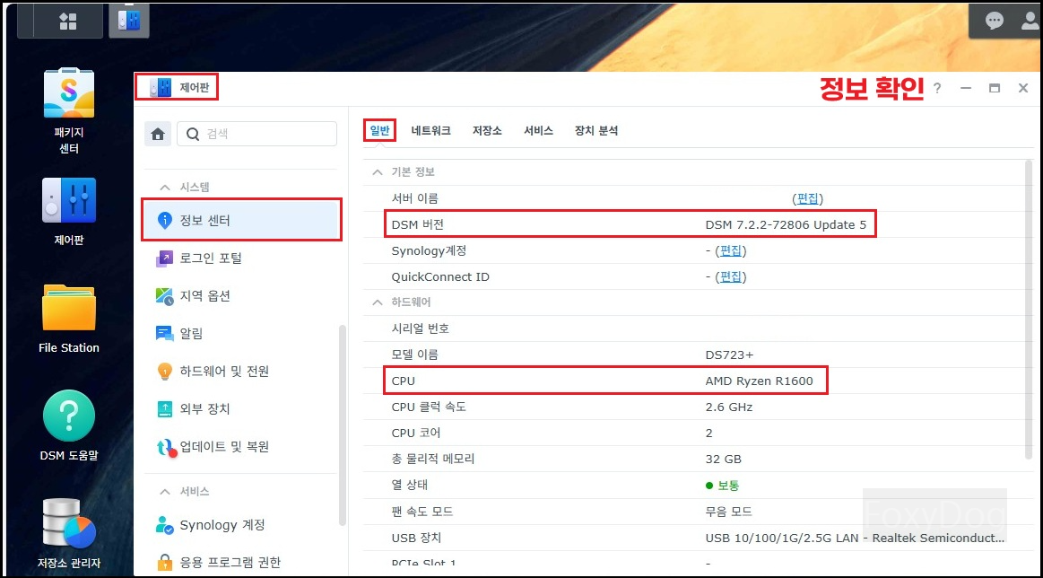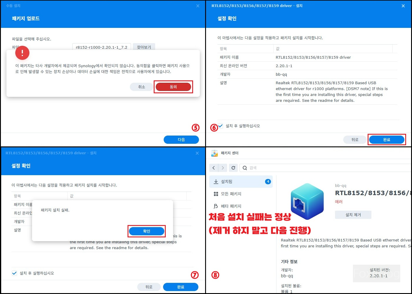 Windows의 경우는 자동으로 설치가 되지만, 시놀로지 NAS에는 CPU와 DSM 버전에 맞는 이더넷 드라이버(Driver)를 설치해야 합니다.