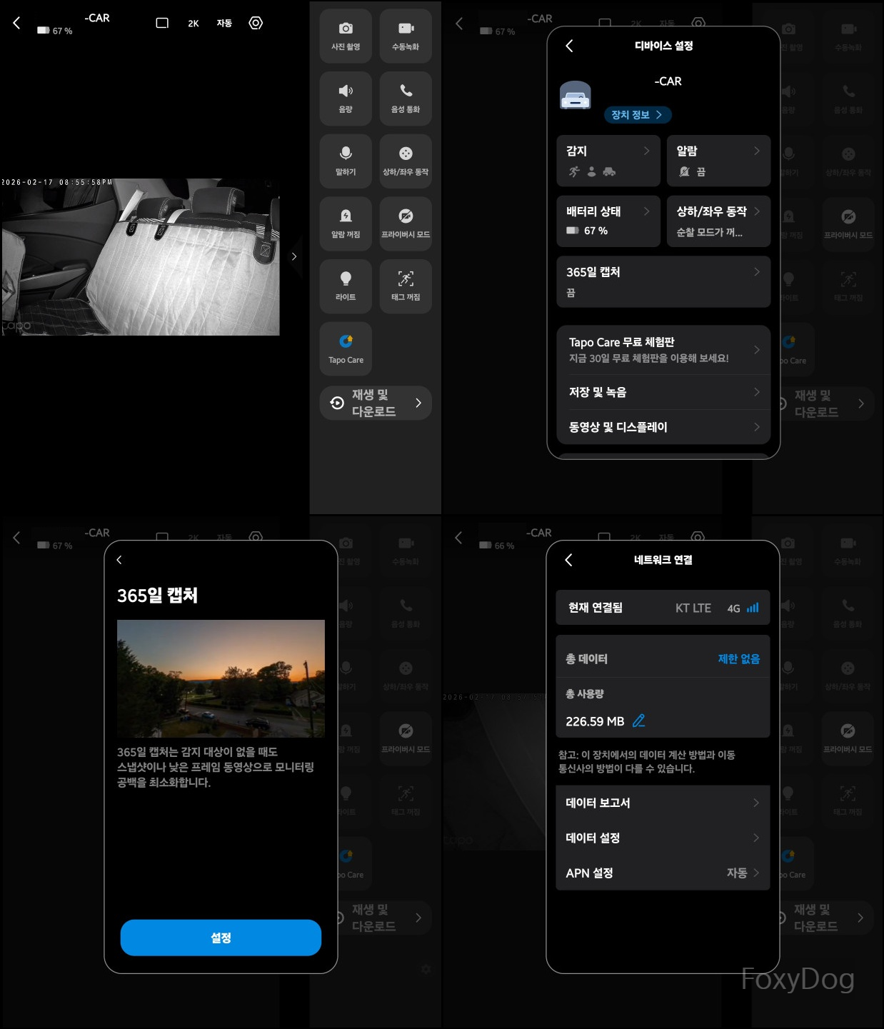 사실 당장 꼭 필요한 상황은 아니지만, 현재는 차량 내부에 임시로 설치하여 사용 중입니다. Tapo CCTV 제품을 하나라도 사용해 보셨다면 컨트롤 패널 UI는 대부분 유사하기 때문에 조작이나 세팅 과정은 크게 어렵지 않습니다.