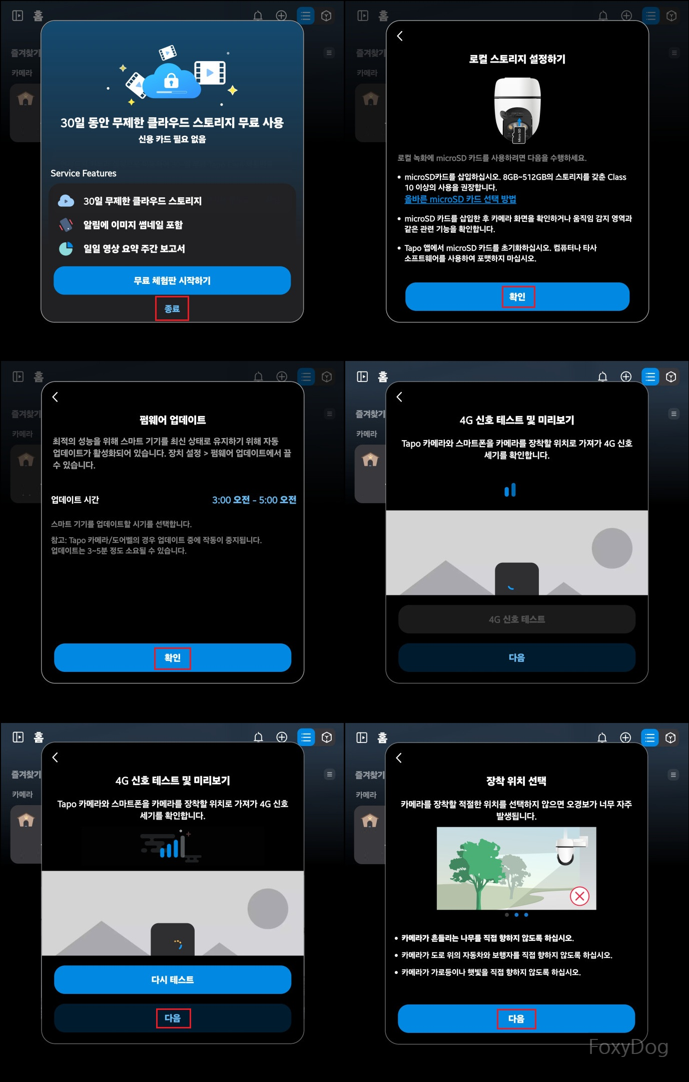 복잡해 보이지만 실제로는 대부분 안내 설명 위주의 메뉴이기 때문에, 통신을 위한 Nano SIM(유심)과 로컬 저장용 microSD만 정상적으로 장착되어 있다면 거의 '다음' 버튼만 눌러도 설정이 완료됩니다. 장치 이름이나 기기 배치, 아이콘 설정 등은 사용 환경에 맞게 임의로 지정하시면 됩니다. 특히 CCTV를 여러 대 운용하신다면 설치 위치(예: 주차장, 현관, 창고 등) 기준으로 이름을 구분해 두는 것이 나중에 확인할 때 훨씬 편리합니다.