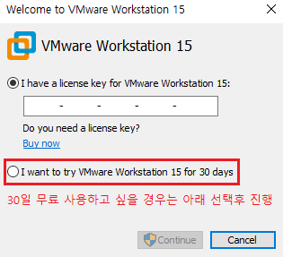 부담이 되시는 분들은 비상업적 목적으로 사용 시 Workstation 15.5 Player 버전은 무료 사용가능