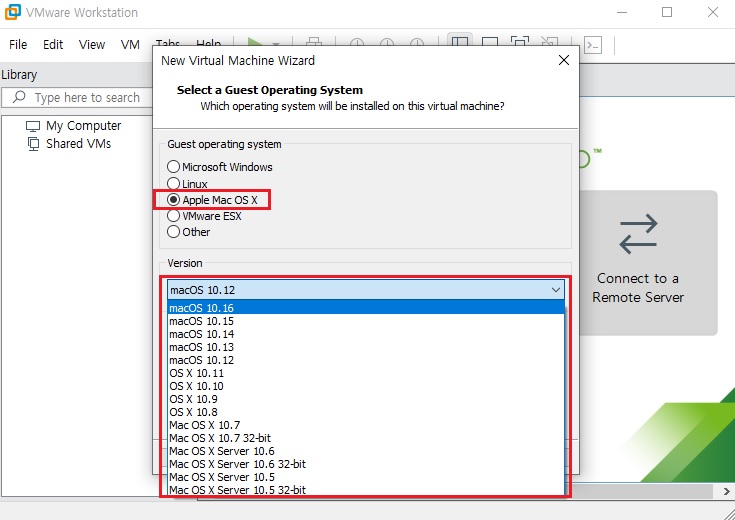 완료가 되면 아래와 같이 VMware 실행 시 정상적으로 [Apple Mac OS X] 리스트에 나오게 됩니다.