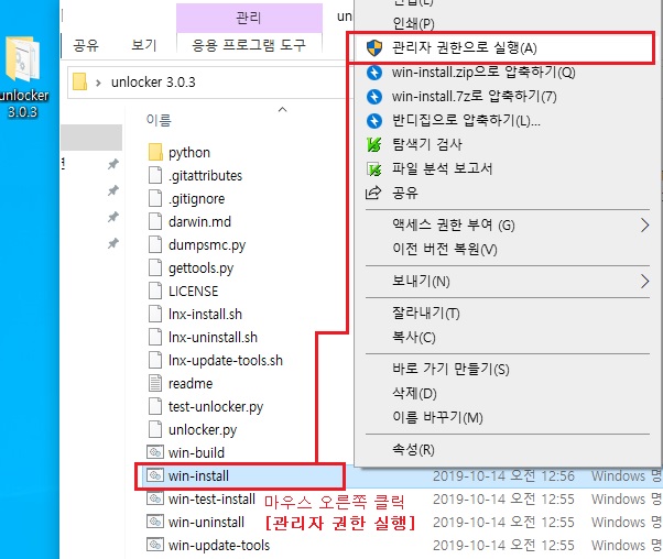 [win-install] 파일 오른쪽 마우스 클릭 후 꼭!! [관리자 권한으로 실행] 할 것