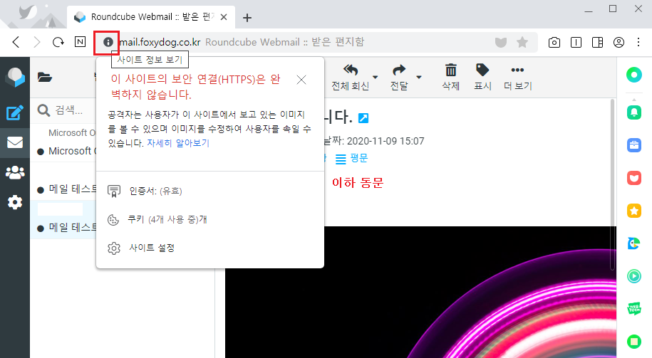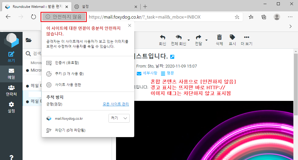 □ 혼합 콘텐츠를 HTTPS/HTTP 사용했을 경우 이미지 보는 방법