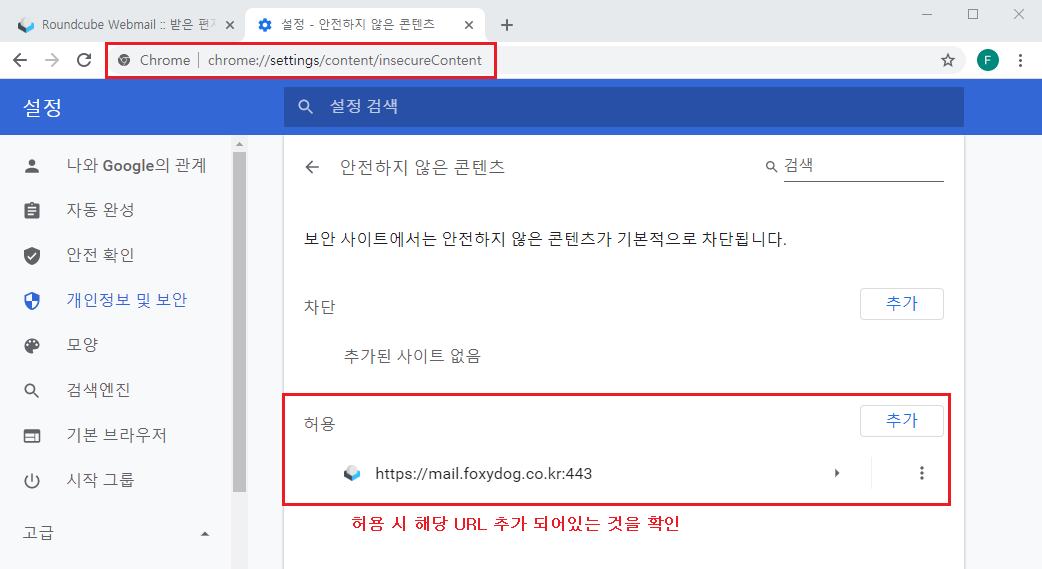 ※ 크롬 브라우저 설정 : chrome://settings/content/insecureContent
